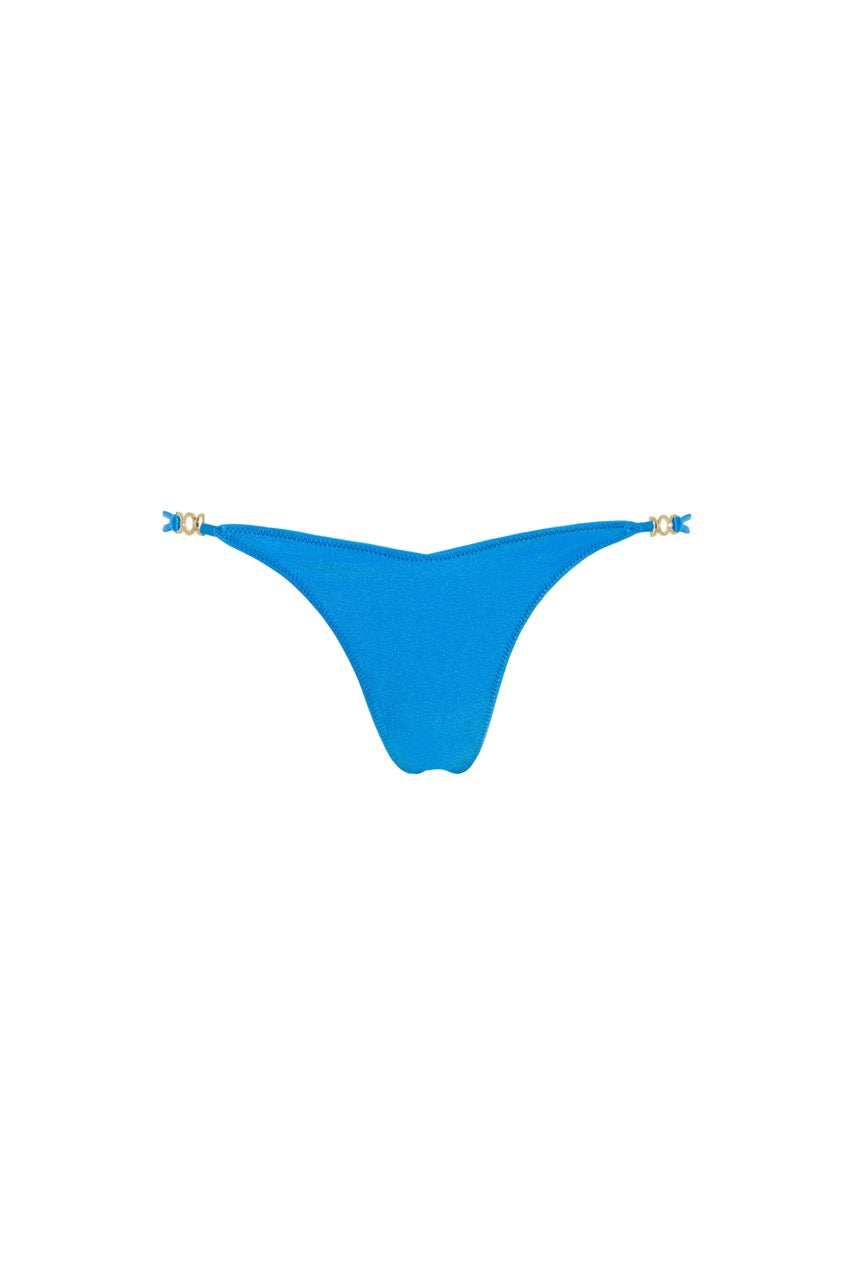Featuring a flattering v-cut silhouette, this bottom sculpts the waist and elongates the leg line for a confident, feminine look. Gold hardware at the front adds a touch of luxe, echoing the gleam of sunlit shores.
